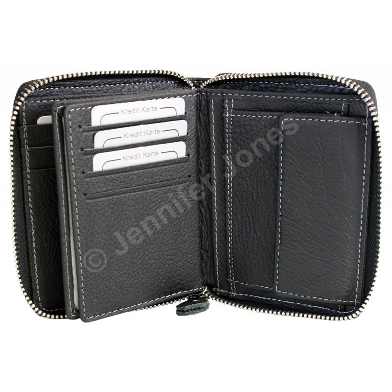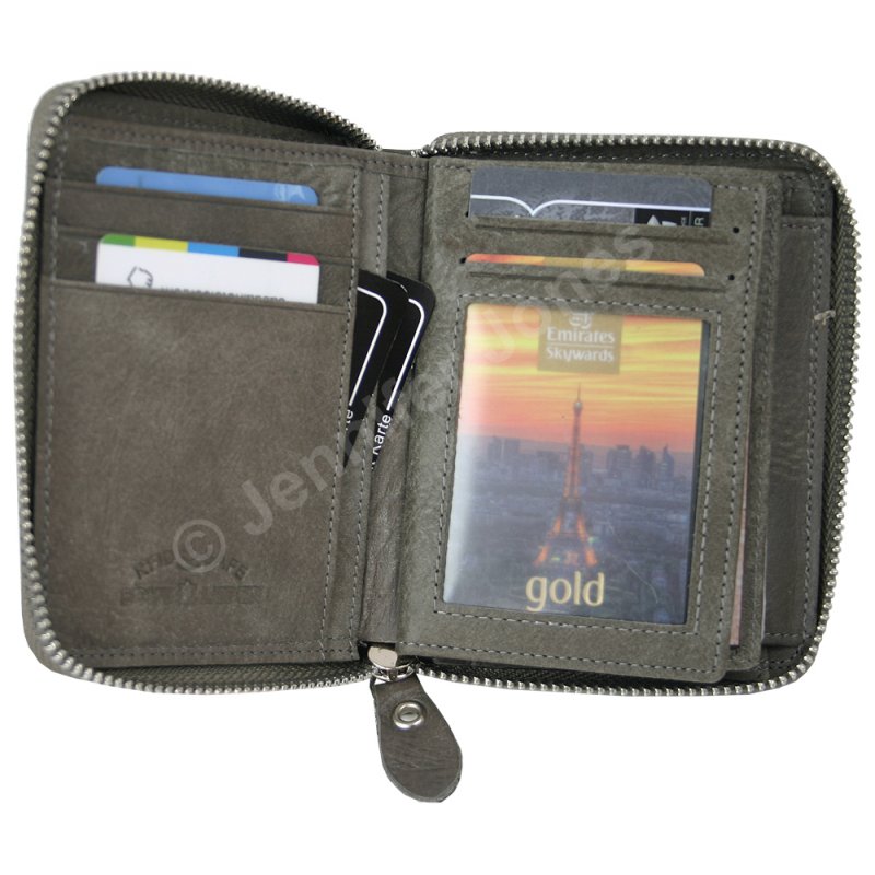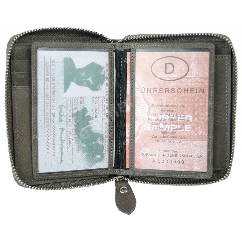 - Portfel zamykany w całości na zamek błyskawiczny